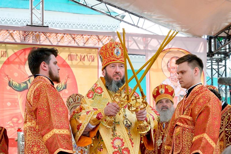 Митрополит Астанайский и Казахстанский Александр возглавил праздничное богослужение в Никольском соборе города Алма-Аты. На площади перед храмом, под открытым небом состоялась Божественная Литургия пасхальным чином.