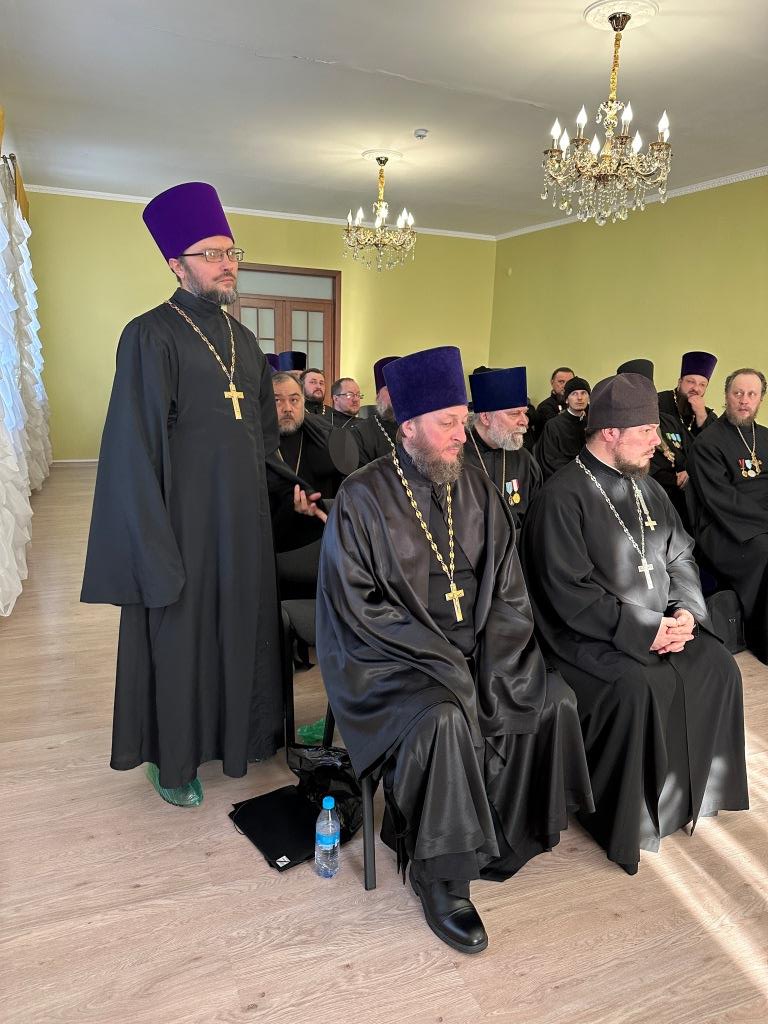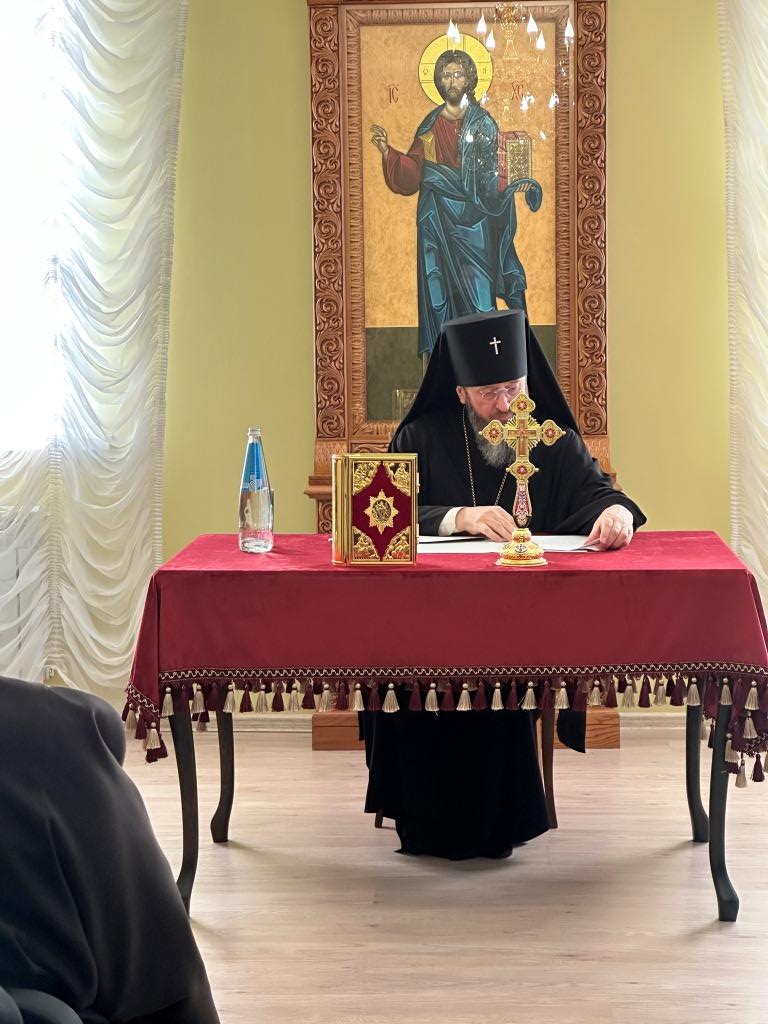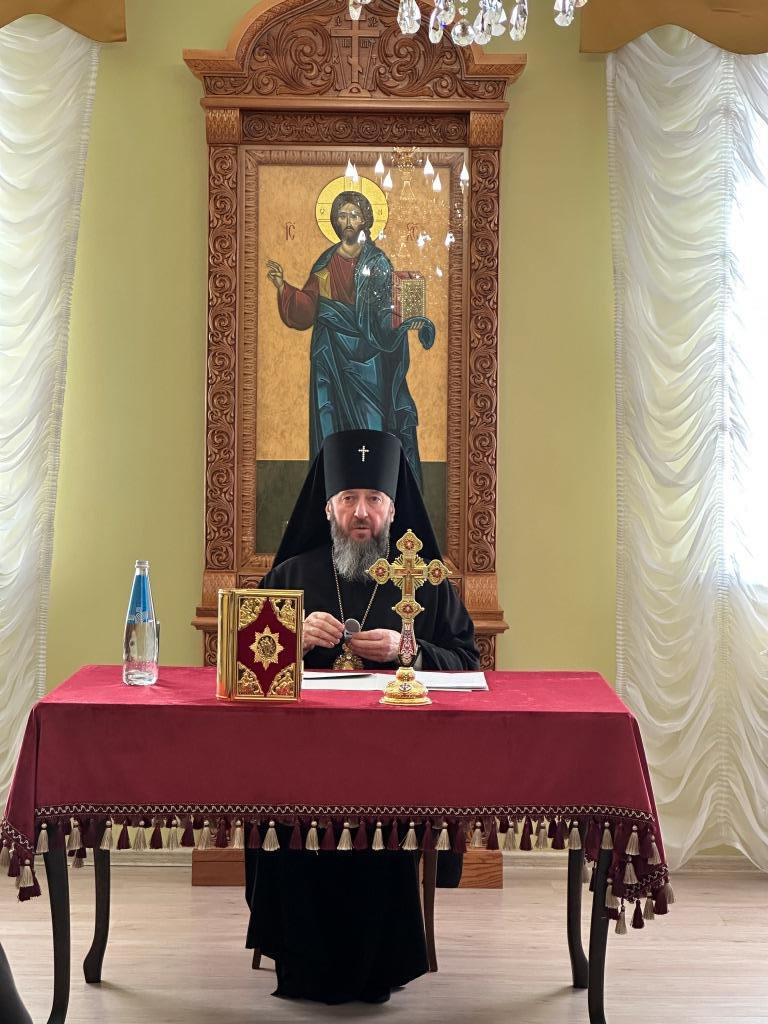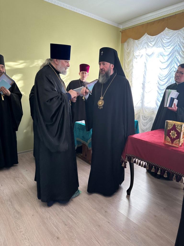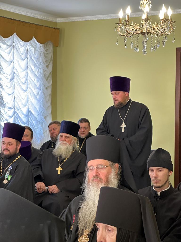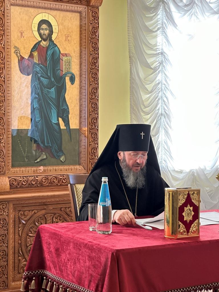 В первой части заседания Высокопреосвященнейший архиепископ Амфилохий выступил с докладом, посвященным жизни и деятельности Усть-Каменогорской епархии в уходящем 2024 году. Особое значение Владыка архиепископ придал вопросу духовного образования клириков епархии.