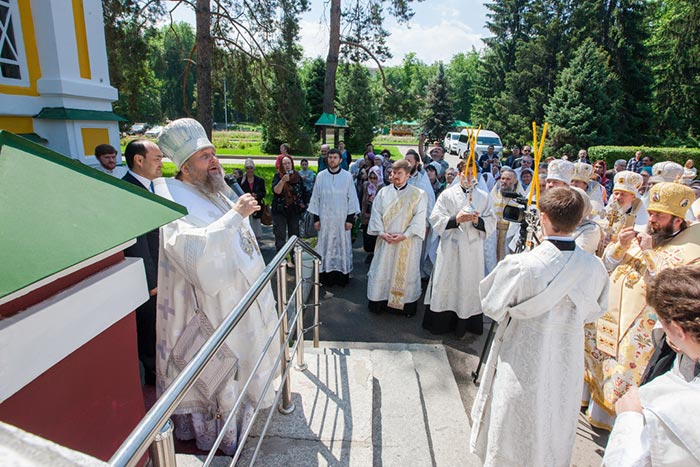После слов приветствия при пении тропаря Вознесению Господню, митрополит Александр и Г.Н. Шойкин сняли с мемориальной доски белый покров. Глава Митрополичьего округа огласил текст, запечатлённый на доске, и окропил ее святой водой.