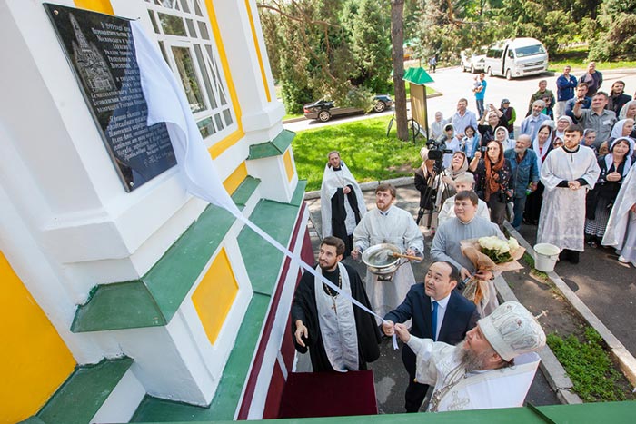 В открытии мемориального знака приняли участие: Глава Православной Церкви Казахстана митрополит Астанайский и Казахстанский Александр, епископ Талдыкорганский Нектарий, епископ Усть-Каменогорский и Семипалатинский Амфилохий, председатель Комитета по делам религий Республики Казахстан Г.Н. Шойкин, священнослужители Алма-Атинской епархии и прихожане собора.